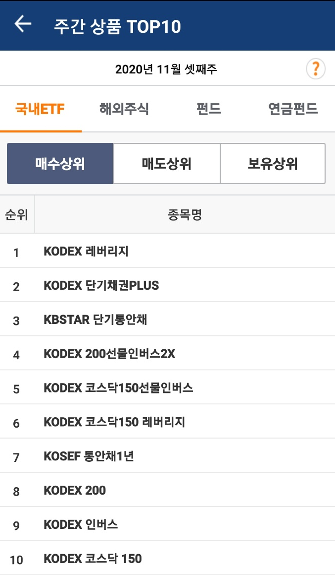 2020년 11월 3주차 (미래에셋대우 기준) 국내 ETF 매수상위 Best 10 소개하면서 포스팅을 마치겠다.