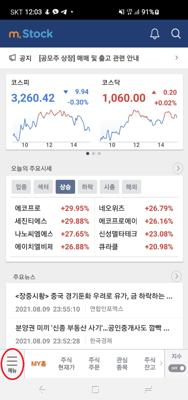 1. 우선 미래에셋증권 m.Stock 어플을 연다.