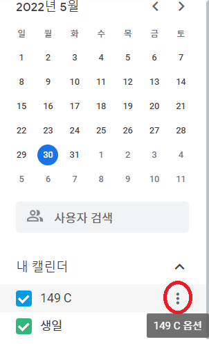 해당 구글캘린더에 마우스 커서를 가져가보면,