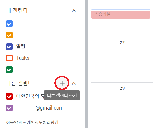 "다른 캘린더 추가"를 해봅시다.