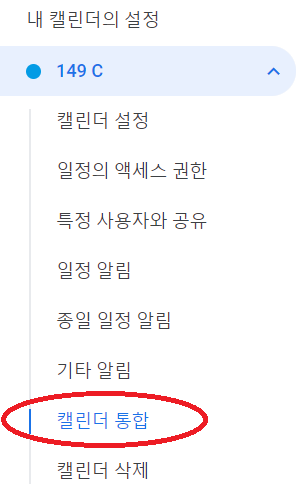 아래와 같이 "캘린더 통합"이라는 항목이 나옵니다. 이걸 클릭