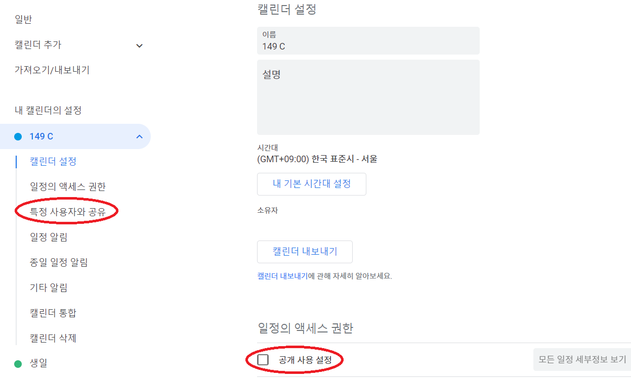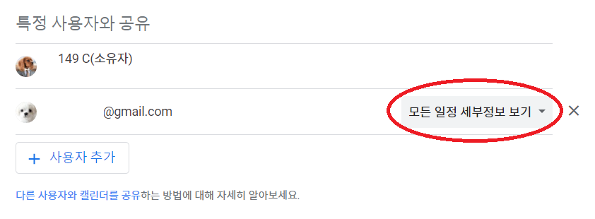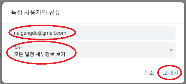 [구글캘린더를 공유하는 사람의 설정 방법]
