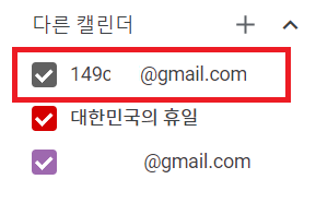 좌측의 "다른 캘린더"에서,