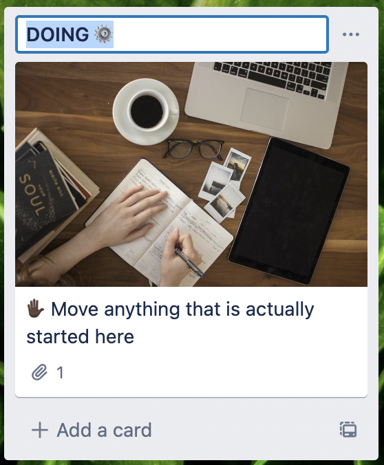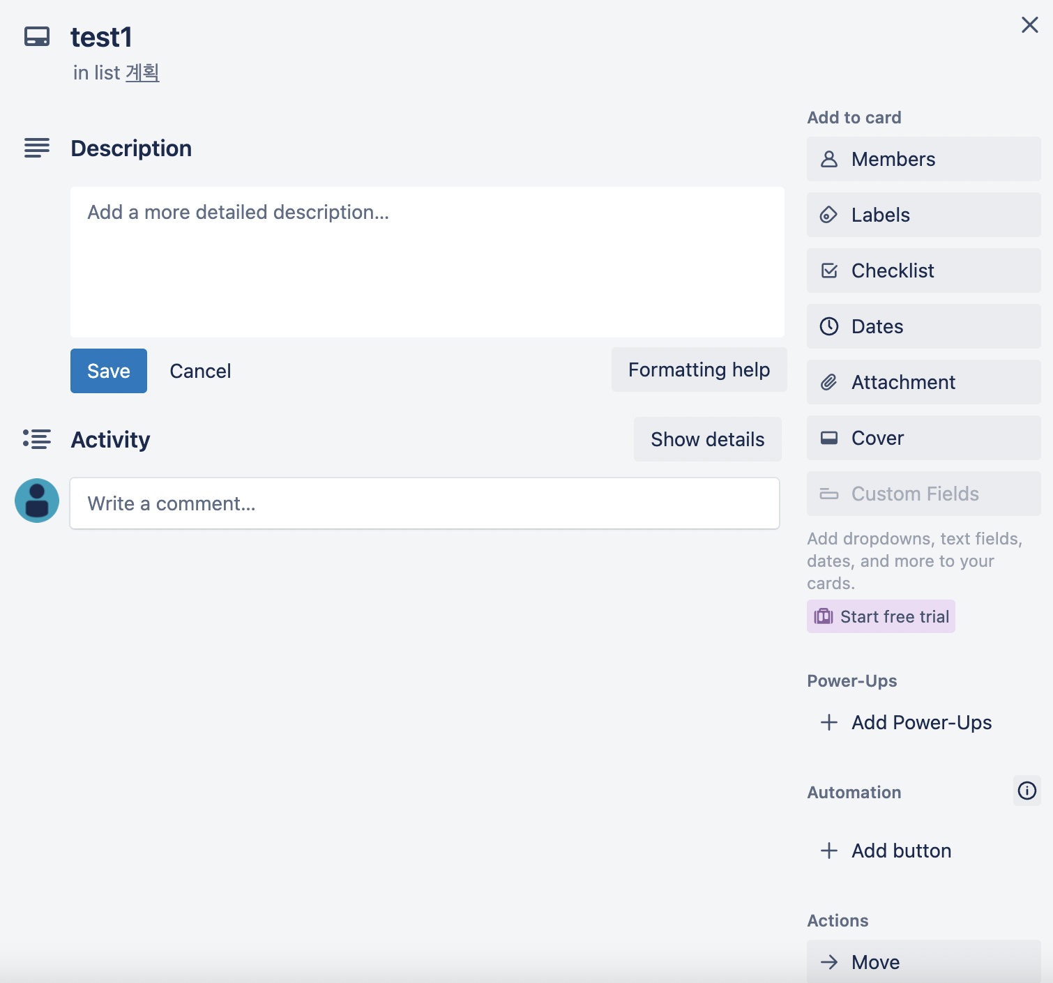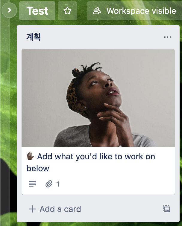 각 메뉴 최하단부의 "+ Add a card"를 눌러서 새로운 과업을 생성해 봅시다.