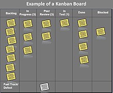 개인적 또는 조직적인 수준에서 작업을 관리하기 위해 간반을 구현하기 위해 사용할 수 있는 도구들 가운데 하나로, 작업 항목 표현을 위해 "카드"들을 사용하고, 각 프로세스 단계를 표현하기 위해 "컬럼"을 사용하여 시각적으로 다양한 단계의 프로세스의 일을 시각적으로 표현한다. 카드는 왼쪽에서 오른쪽으로 움직여 진행상황을 표현하고 작업을 수행하는 팀의 조율을 돕는다(출처 : 위키백과).