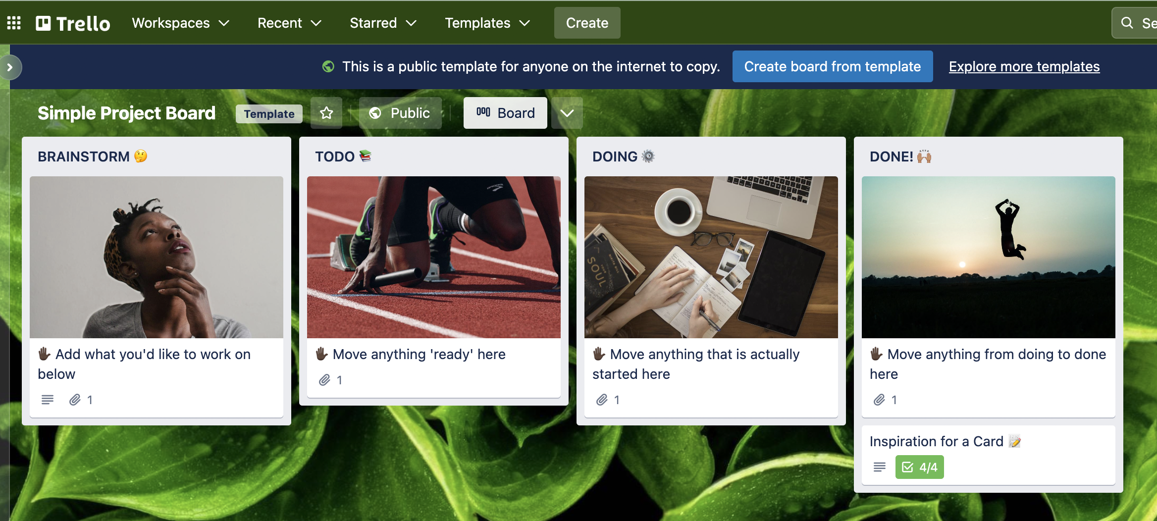 위 화면에서 "Create board from template" (파란색 배너)를 클릭하면,