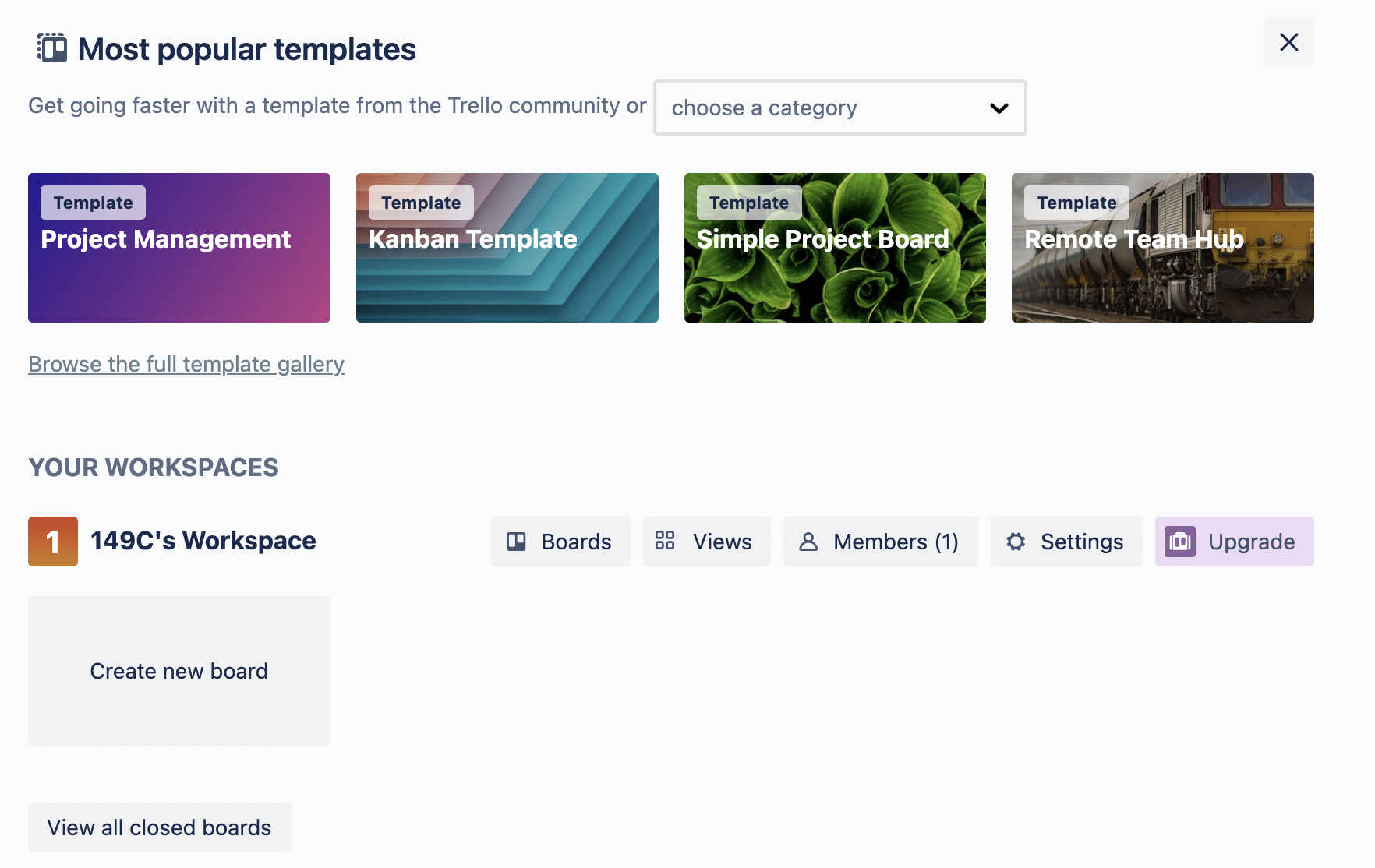 "Create new board"를 통해 새로운 보드를 만들 수도 있겠지만,