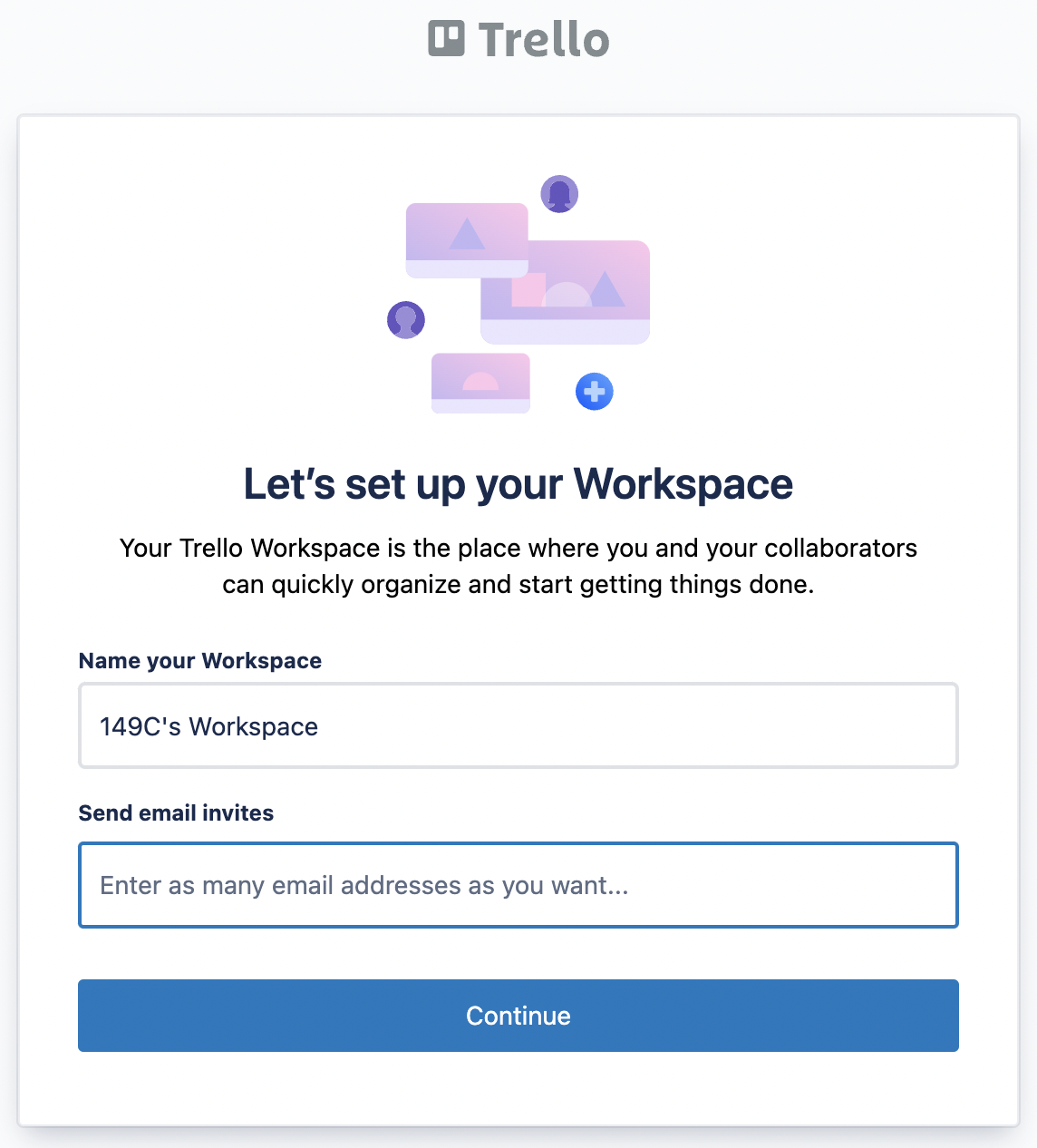 로그인을 하면, 다음과 같이 워크스페이스를 설정하는 화면이 나오는데
