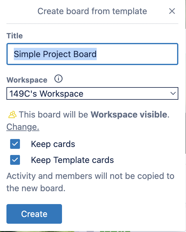 Title(제목)을 입력하고, "Create"하면 새로운 보드가 생성됩니다.