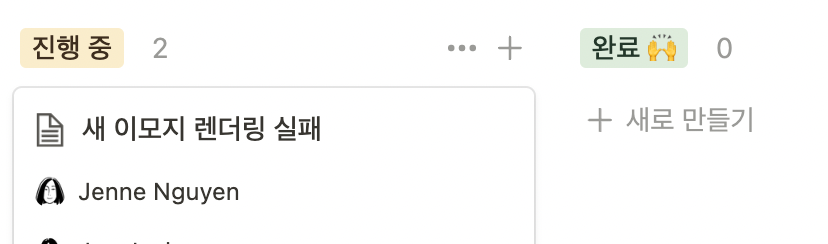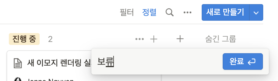 "진행 중" 상태의 오른쪽 "+" 버튼을 클릭하면,