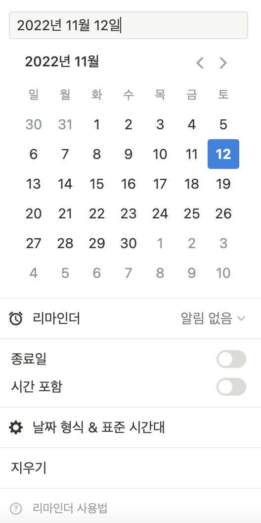 아래 메뉴가 활성화 됩니다. 마감일(시간)을 지정할 수 있고, 리마인더를 활성화 할 수도 있습니다.