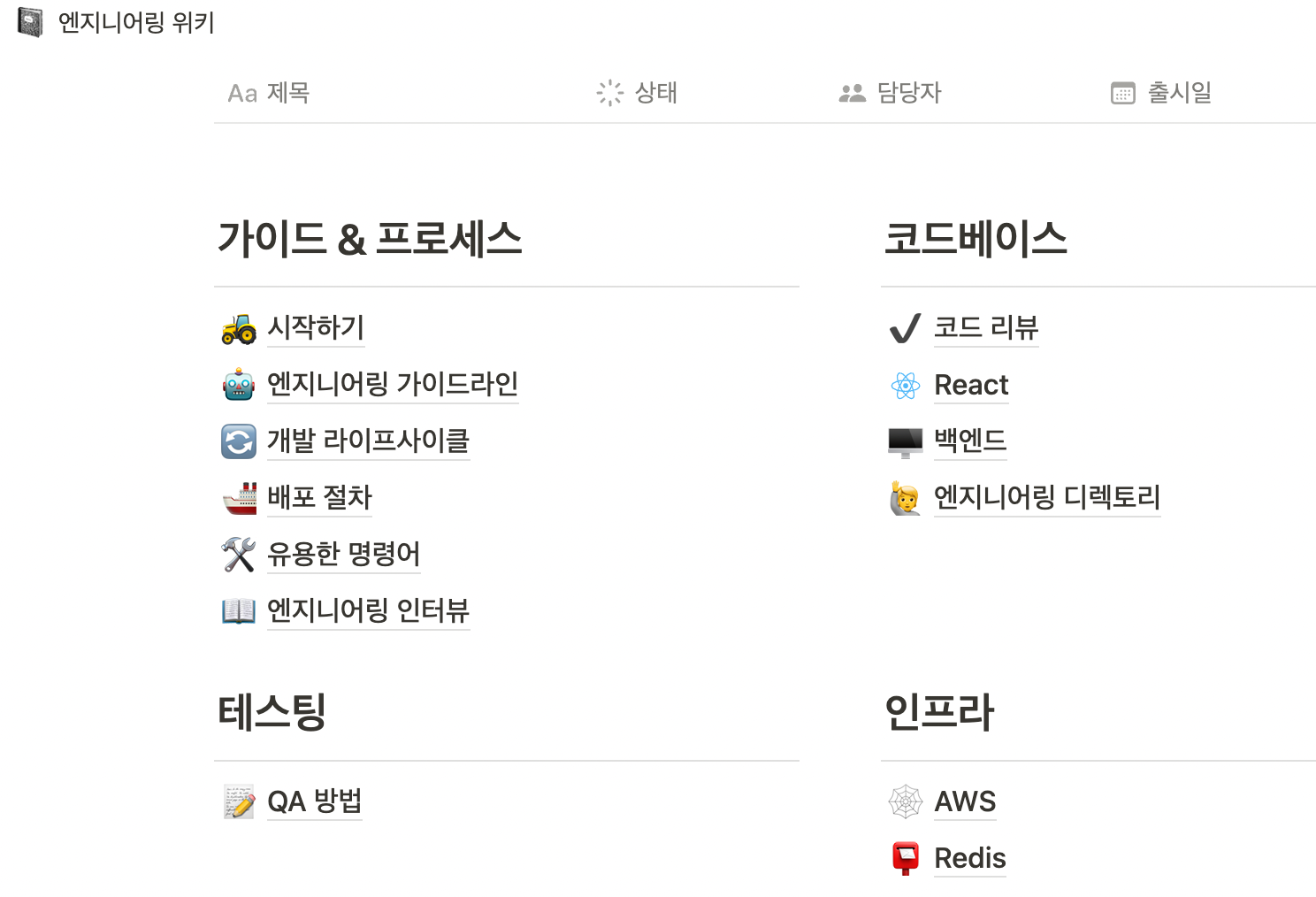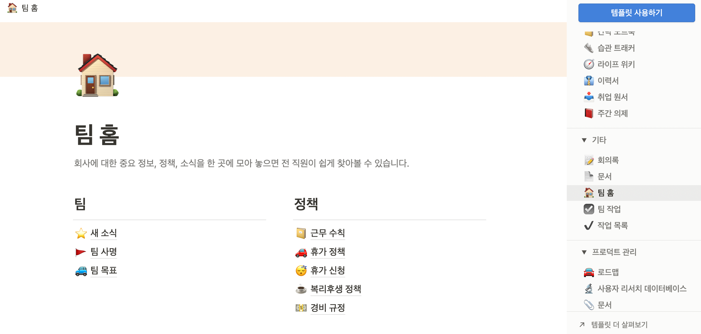 위 그림과 같이 "위키" 템플릿을 이용해서, 매뉴얼과 노하우를 세팅, 공동 작업(업데이트)하기도 좋은 것 같습니다.