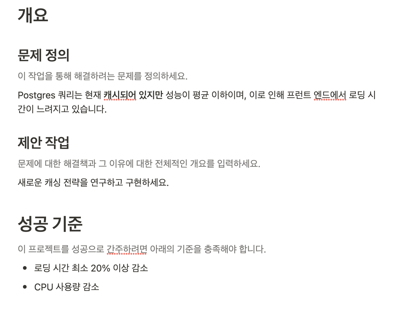 "시작 전 " 카테고리에 "쿼리 캐싱 로직 재작성"이라는 프로세스가 있는데요, 한 번 클릭해 봅시다