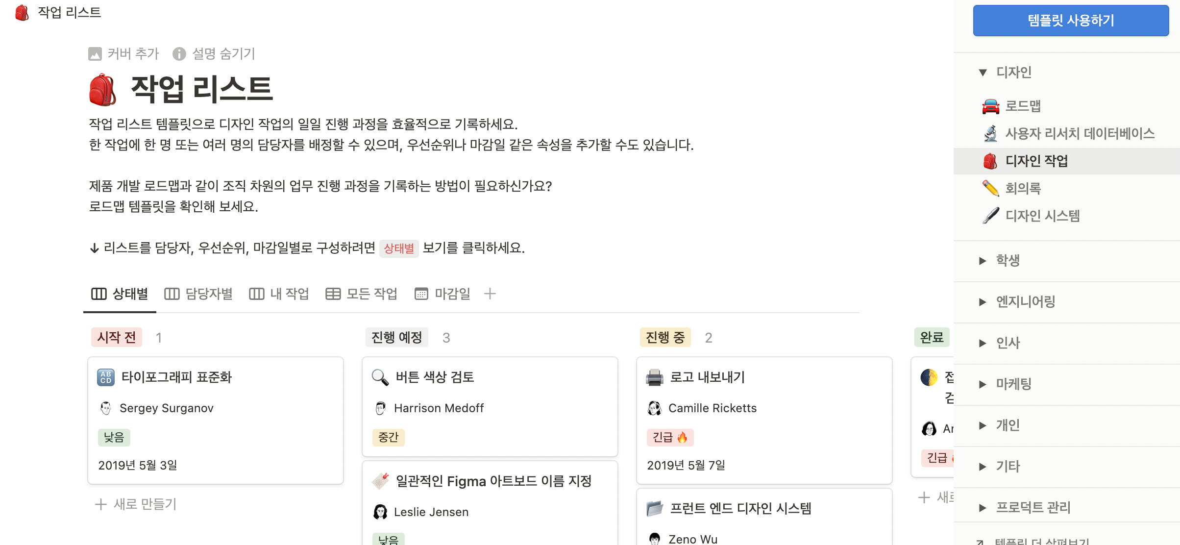 노션(Notion)에서는 자주 활용되고, 바로 사용할 수 있는 템플릿을 제공하고 있습니다.