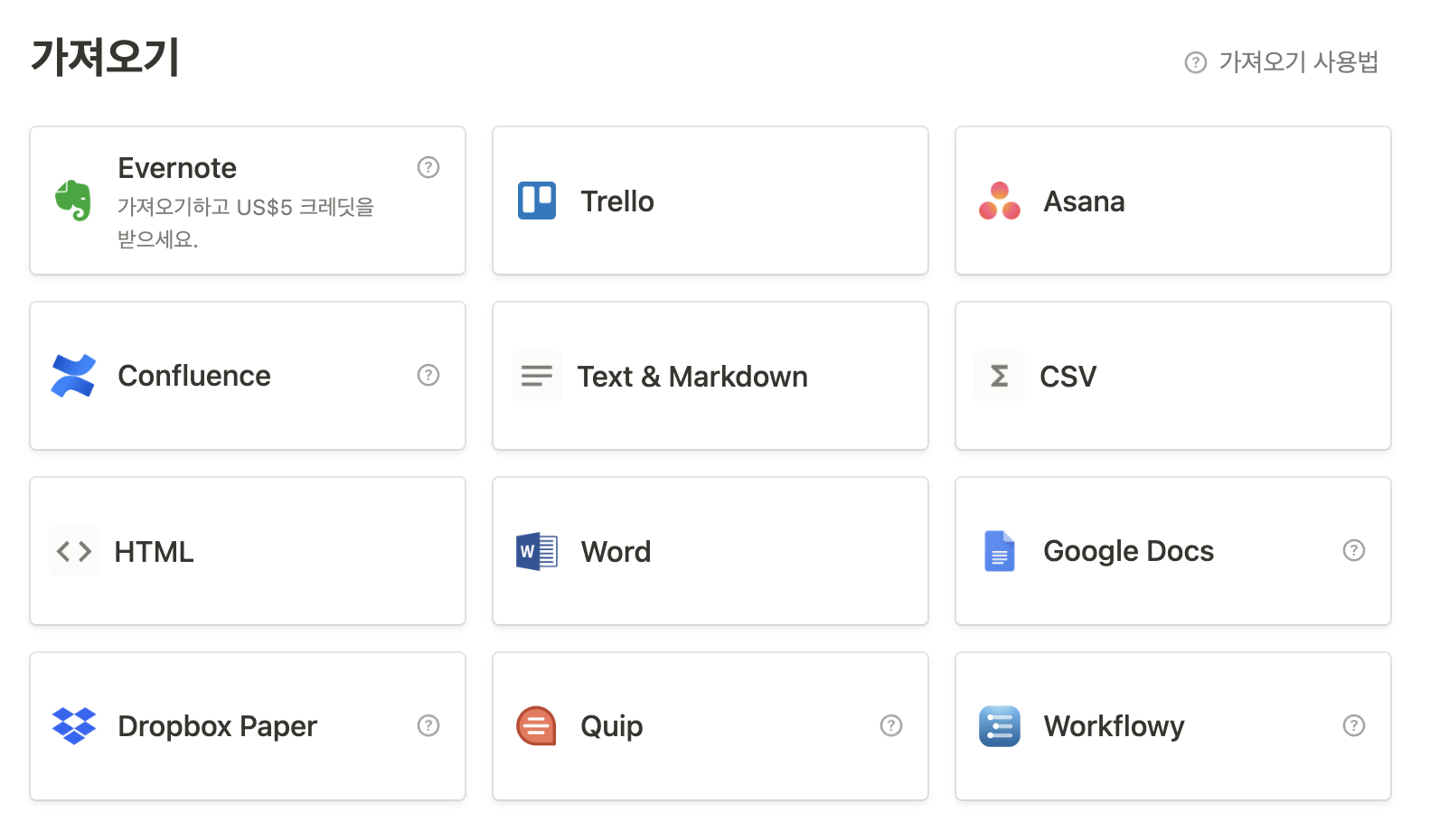 "가져오기"가 강력한 기능 중 하나인데, 아래 보시는 각 공유 파일 서비스에서 파일 등을 가져올 수 있습니다.