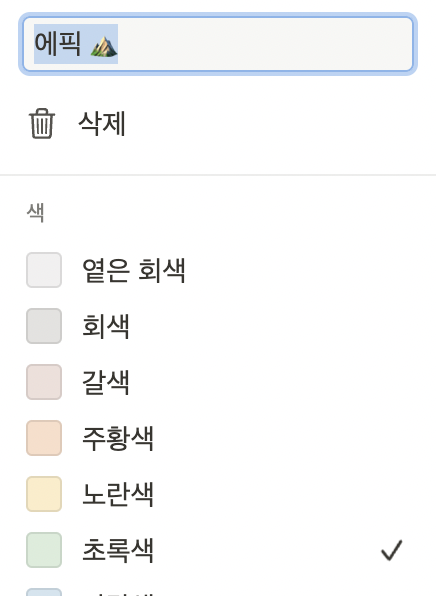 그럼 아래와 같은 메뉴가 활성화 되면서, 이름, 색상을 바꾸거나, 삭제할 수 있게 됩니다.