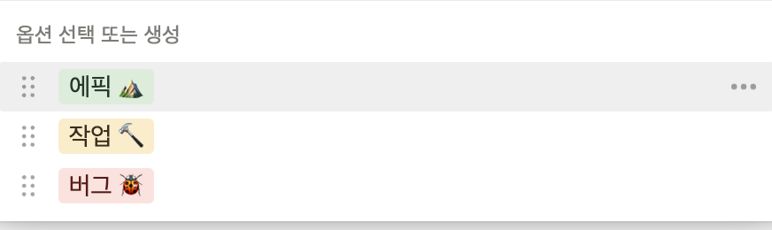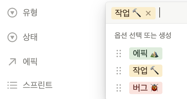 "유형"에 "작업"이라고 나와 있는데, 이걸 클릭하면 아래와 같이 3가지의 유형이 뜨는데