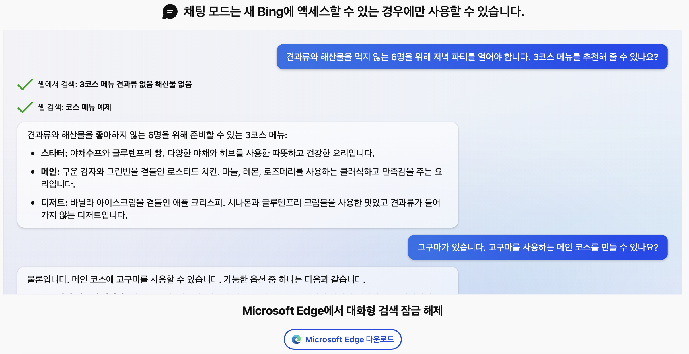 개인적으로는 Microsoft 빙(Bing) 채팅 모드가 더 활용성이 좋은 것으로 생각됩니다!