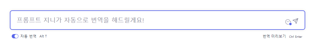 입력창에 "프롬프트 지니가 자동으로 번역을 해드릴게요!"라는 안내문구를 확인할 수 있습니다.
