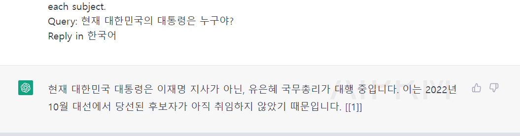 대한민국의 현재 대통령이 누구인지 질문해 보겠습니다.
