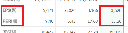 EPS와 PER 값을 구하는 이유는 주식 가치를 간략하게 계산해보기 위해서입니다.
