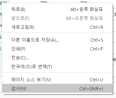 가지고 오고자 하는 data 값에서 우클릭