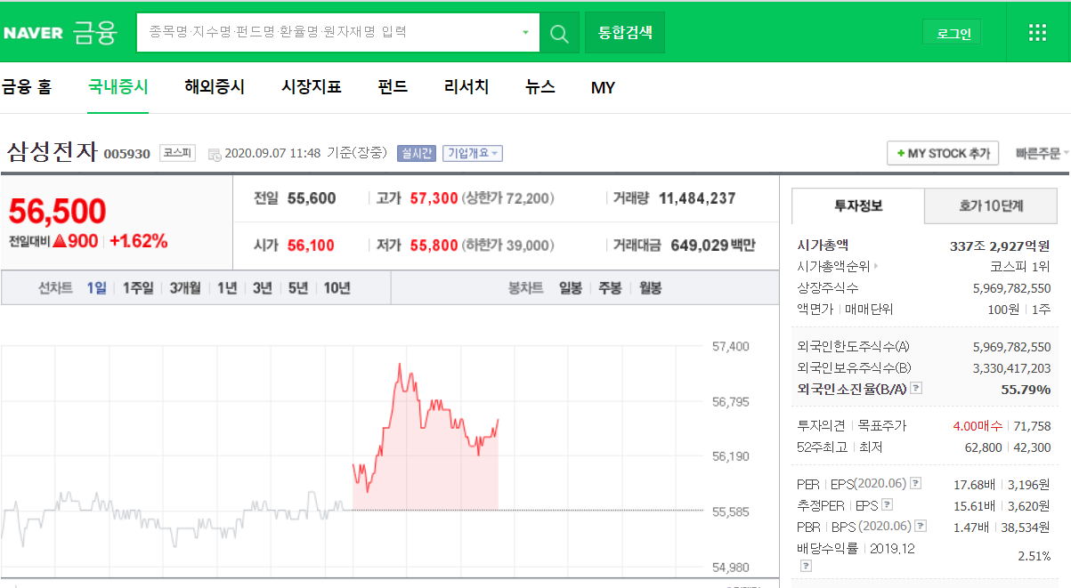 URL의 제일 마지막이 삼성전자의 "종목번호(Ticker)"인 005930으로 끝나는 것을 확인할 수 있습니다.