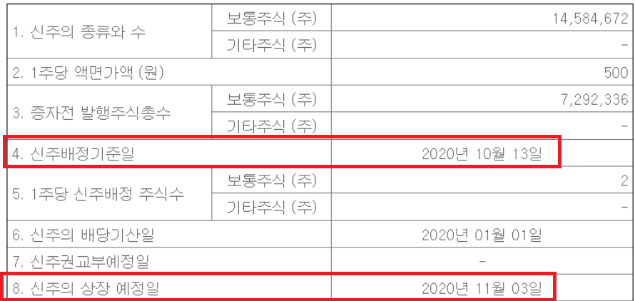 위 기업의 "신주배정기준일"은 2020년 10월 13일 입니다.